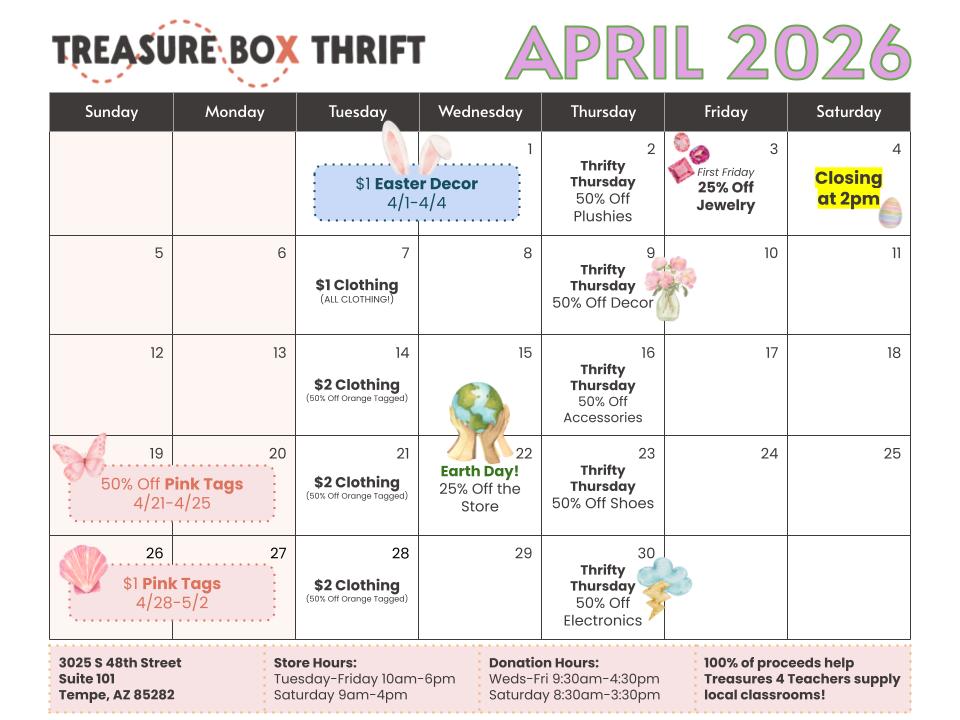Text THRIFT to 888111 for Treasure Box Thrift news and deals!